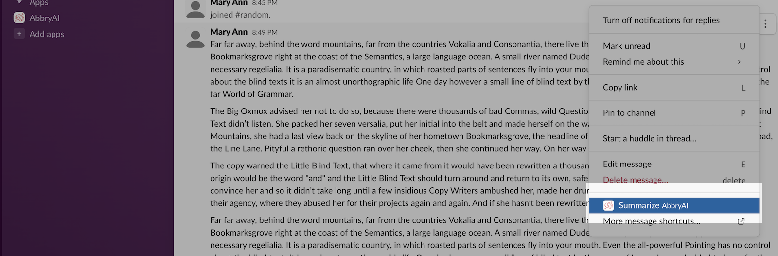 You and all other workspace members can now start summarizations by using the Summarize shortcut in the message menu.